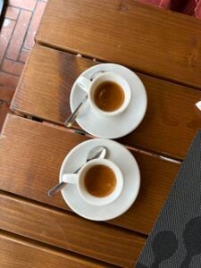 My team’s first ATL day in Albania was on a Saturday at the end of our first week. We prayed throughout the week for God to direct our steps for ATL. Our team quickly noticed the deeply rooted coffee culture present in Albania. The way everyone meets up for coffee throughout the day, and young adults gather around a small coffee shop table to chat and mingle. Talk about a perfect place to share the gospel. With a new team in Albania, we had the opportunity to share our testimonies with one another. Sharing about how we first encountered Jesus and how he has moved in our lives. Revelation 12:11 says, “And they have conquered him by the blood of the Lamb and by the word of their testimony, for they loved not their lives even unto death”. There is a reality that our testimony holds power because it is evidence of Jesus and his work in taking death to life. When Saturday came, we felt directed by the Lord to go to a coffee shop together and share our testimonies around a table (Albanian style) with faith that God would move in the room. We were praying for gospel conversations to happen and for our hearts to be tender to the movement of the Holy Spirit.